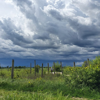 Zenni, mi senti? Qui Jonny cronista dall'Eremhome. Ti passo la linea, vai! vai!.................................... vai?! "Oh si scusa Jonny, eccomi, è che mi ero appisolata su questo bel fustone di frumento, al tepore del sole, per riposarmi un po' dal pericolo delle rondini. Qui, nella campagna cividalese, volano basse, raso raso il campo, sfiorano le onde di frumento, e cacciano insetti...". Capisco, Zenni, capisco, ma voci di corridoio raccontano che i giganti dell'Eremhome sono da quelle parti alla ricerca di Tonino Indaco. Ti risulta? Puoi confermare? "Sì, Jonny, è proprio così! I giganti dell'Eremhome sono in tre, viandanti anche loro come Tonino, nella campagna surreale, e marciano tra il verde e il nero blu livido del cielo. Laggiù tuona, di là già piove, e in lontananza, intermittenti, le punte dei campanili sbucano all'orizzonte come asparagi". Credi che la ricerca dei tre giganti oggi potrebbe avere successo? Nessuno è mai riuscito ad incontrare Tonino Indaco, sarebbe uno scoop sensazionale! "Non credo ci siano buone probabilità di successo. Al momento poi, con il cielo che incombe, temo che la ricerca dei giganti dovrà interrompersi. E infatti, li vedo dubbiosi e perplessi, scrutano il cielo, si consultano, cambiano rotta...sembra rientrino. La ricerca forse chissà proseguirà con tempi migliori. Io anche però me ne volo via al riparo dai goccioloni imminenti e dalle rondini accanite e sempre più frenetiche ed elettrizzate, prima che mi scoprano e mi acciuffino per merenda! Quindi, Jonny, ti ripasso la linea, a prossimi aggiornamenti". Va bene, grazie a te Zenni cronista e a risentirci, popolo seguace dell'Eremhome, per una nuova palpitante cronaca su questo luogo d'incanto e limitrofi, e sui suoi abitanti. Grazie ancora a Zenni per il suo prezioso contributo di foto e video davvero spettacolari! Adios!